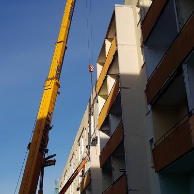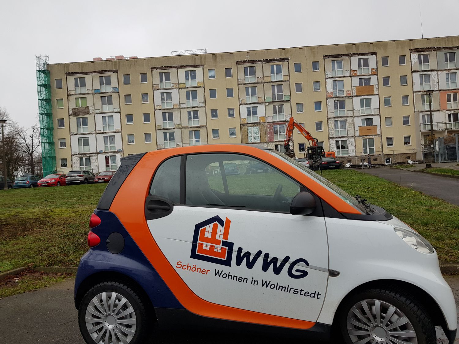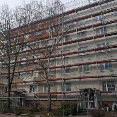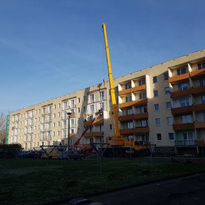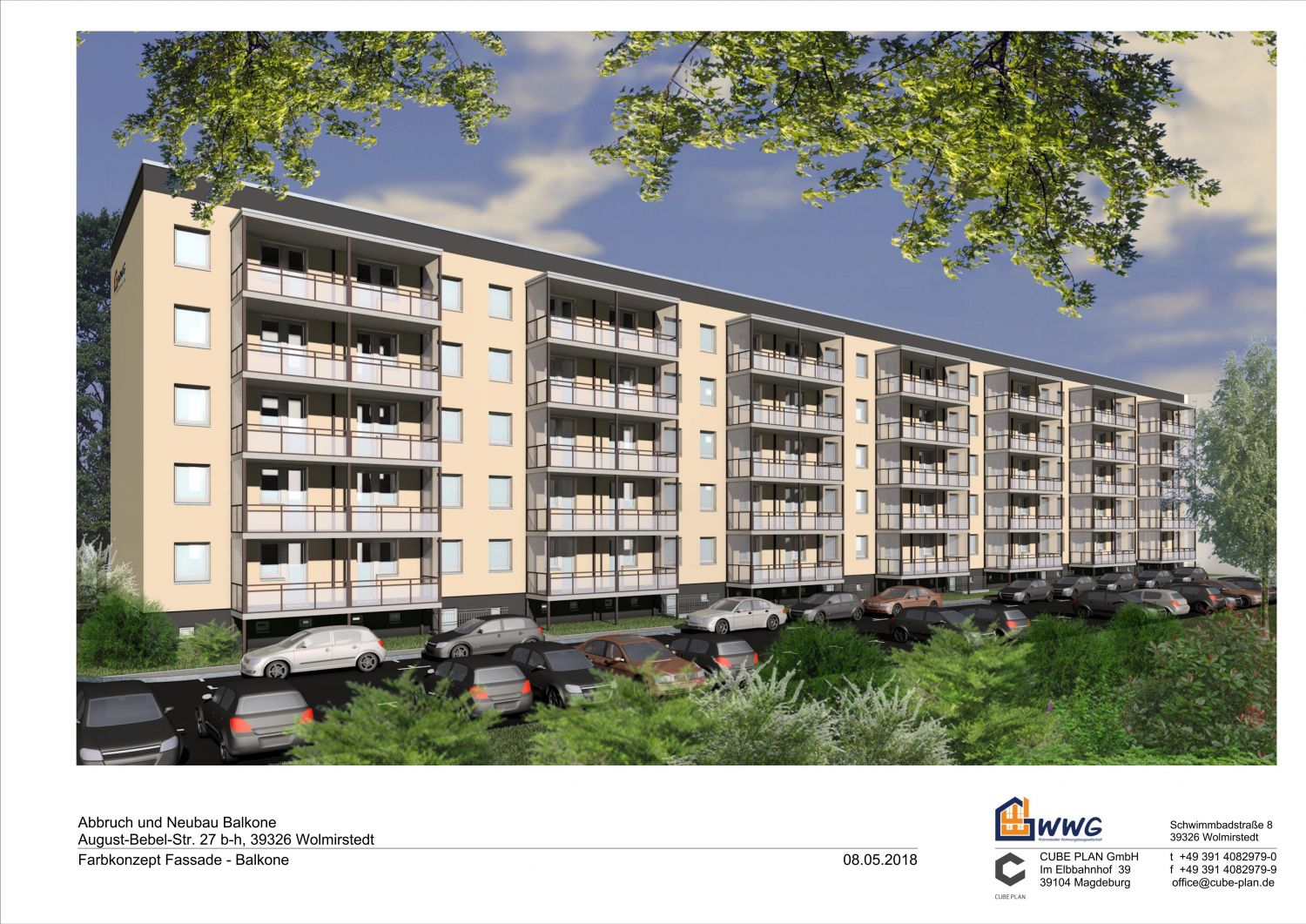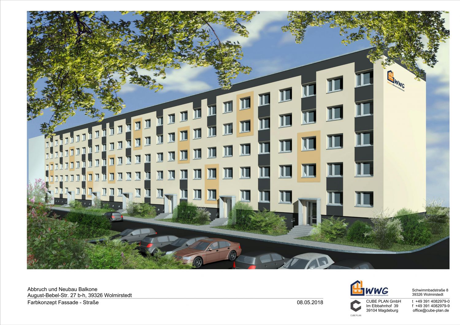 Das Wohnhaus in der Augsut- Bebel- Straße wird von der WWG saniert. Die alten Balkone werden entfernt und durch größere Balkone ersetzt, die Wohnungen erhalten Brandschutztüren, es werden Gegensprechanlagen nachgerüstet, das Dach wird erneuert und die Fassade bekommt einen neuen Glanz. Hier einige Bilder zum Baufortschritt: