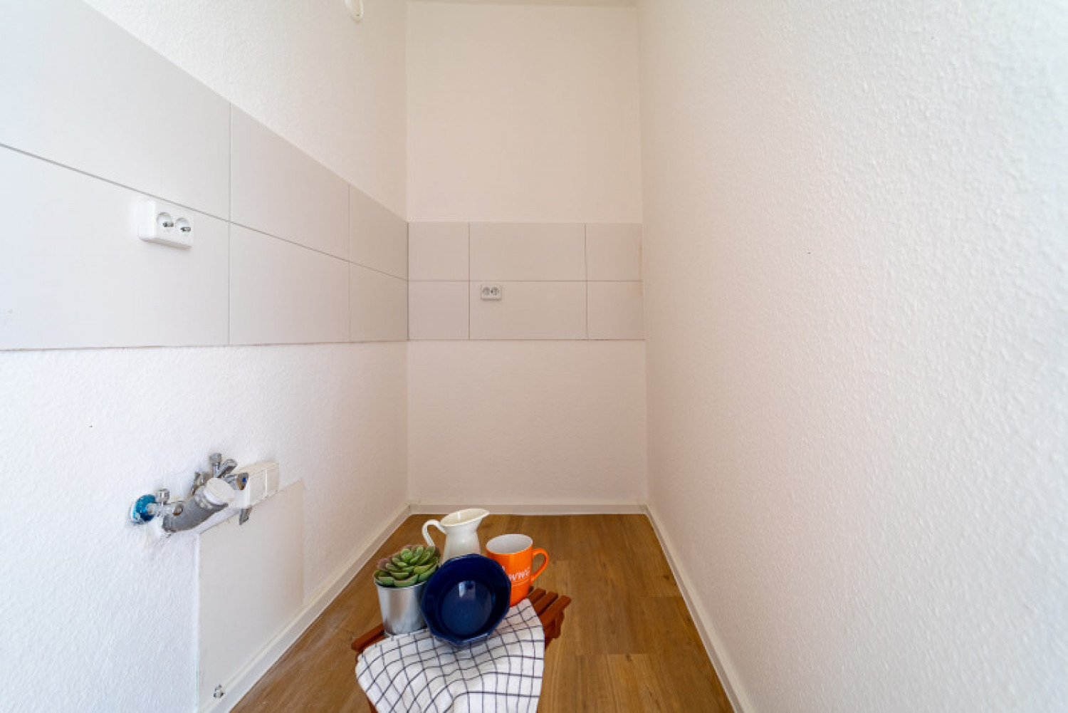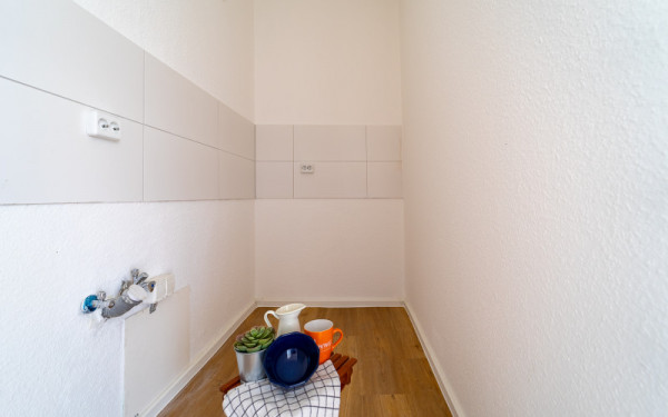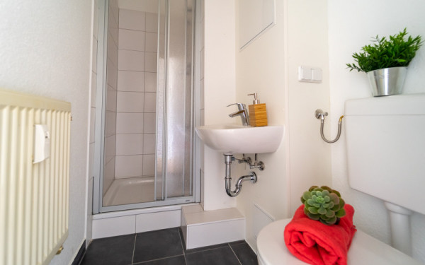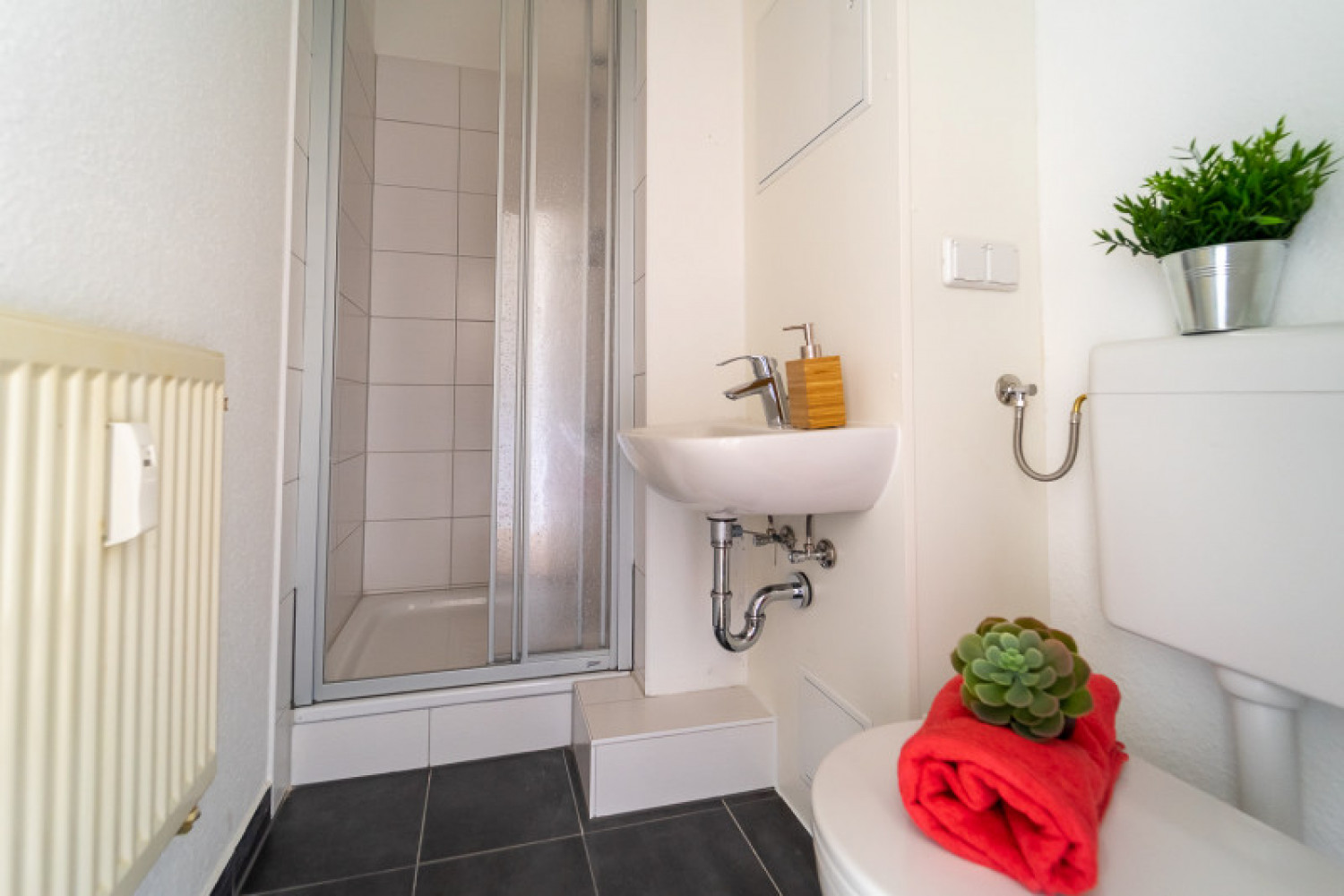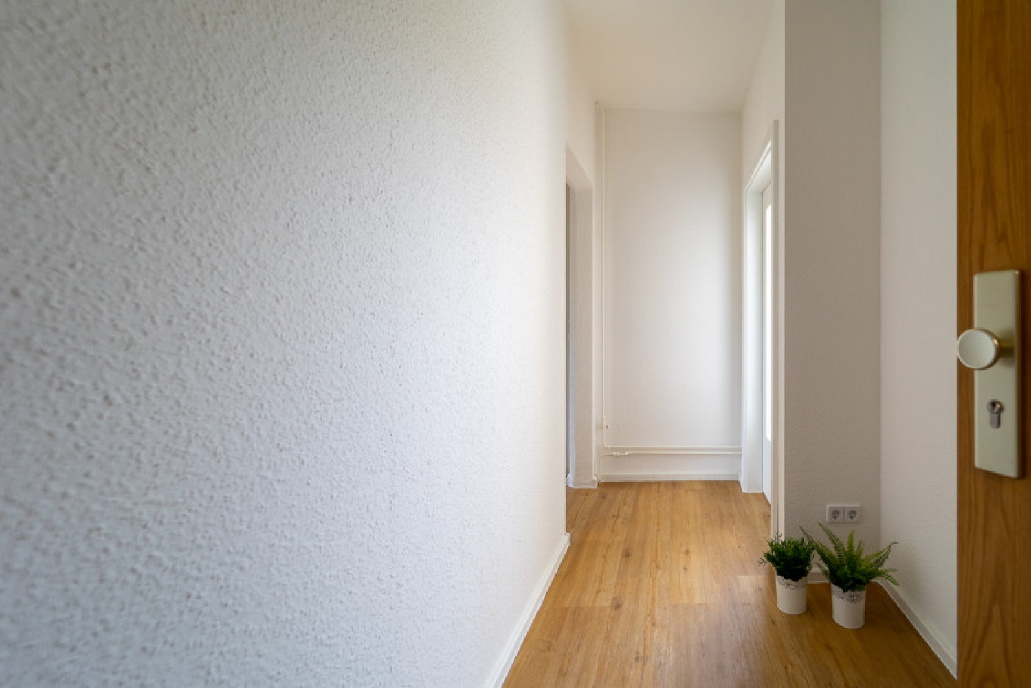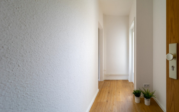 Die Wohnung wurde in 2021 komplett renoviert. Konkret wurde die Elektrik, die Bodenbeläge, die Zimmertüren und die Tapeten erneuert. Auf den Fußböden ist ein pflegeleichter Designbelag (PVC-Planke) in Holzoptik verlegt. Das Bad mit Dusche ist im modernen Design gefliest. Modernste Rauchwarnmeldetechnik und eine Wechselsprechanlage gehören ebenfalls zur Ausstattung.