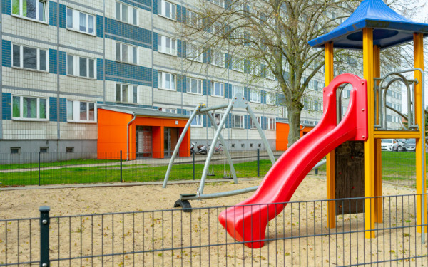 Ein schöner Spielplatz befindet sich direkt am Objekt.
