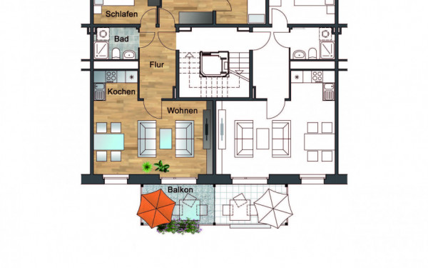 Die neuen Balkone sind mit einer Grundfläche von fast 7 Quadratmetern (ca. 3,5 * 2,0 m) sehr geräumig und laden zum Verweilen ein.