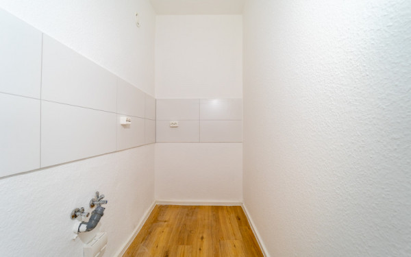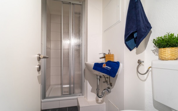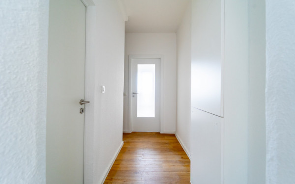 Die Wohnung wurde in 2021 komplett renoviert, d.h. die Elektrik, die Bodenbeläge, die Zimmertüren und die Tapeten wurden erneuert. Auf den Fußböden ist ein pflegeleichter Designbelag (PVC-Planke) in Holzoptik verlegt. Das Bad mit Dusche ist im modernen Design gefliest. Modernste Rauchwarnmeldetechnik und eine Wechselsprechanlage gehören ebenfalls zur Ausstattung.