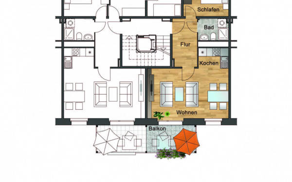 Die Wohnung wird Anfang 2026 komplett renoviert, d.h. die Elektrik, die Bodenbeläge, die Zimmertüren, die Tapeten werden erneuert. Auf den Fußböden wird ein Designbelag (PVC-Planke) in Holzoptik verlegt. Das Bad wird mit einer Dusche ausgestattet und im modernen Design gefliest. Modernste Rauchwarnmeldetechnik und eine Wechselsprechanlage gehören ebenfalls zur Ausstattung. Zu jeder Mieteinheit gehört ein separater Keller. Die neuen Balkone sind mit einer Grundfläche von fast 7 Quadratmetern (ca. 3,5 * 2,0 m) sehr geräumig und laden zum Verweilen ein.