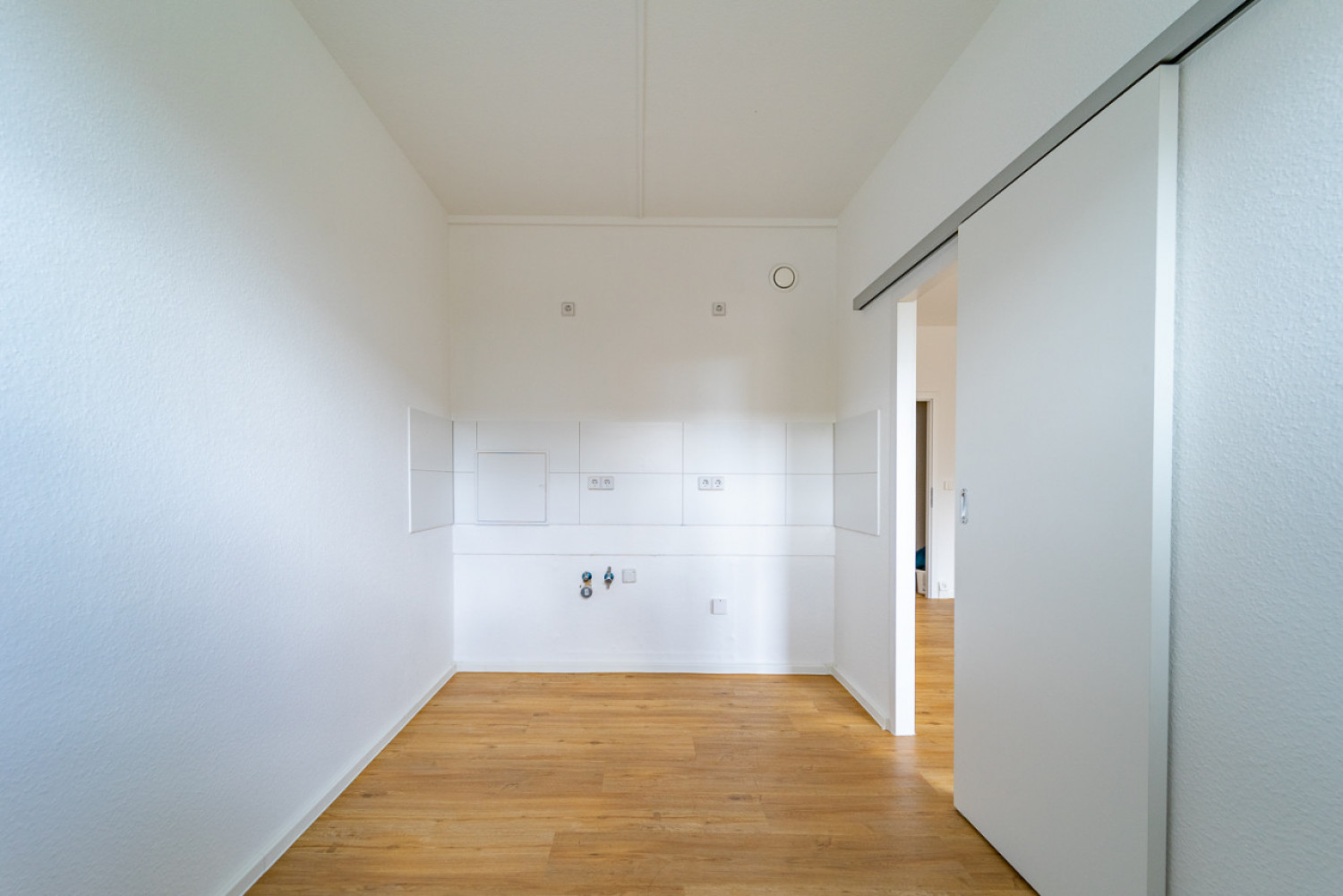 Die Wohnung wurde in 2024 komplett renoviert, d.h. die Elektrik, die Bodenbeläge, die Zimmertüren und die Tapeten wurden erneuert. Auf den Fußböden ist ein pflegeleichter Designbelag (PVC-Planke) in Holzoptik verlegt. Das Bad mit Dusche ist im modernen Design gefliest. Modernste Rauchwarnmeldetechnik und eine Wechselsprechanlage gehören ebenfalls zur Ausstattung. Die Einbauküche der aktuellen Mieterin kann gegen Entgelt übernommen werden. Details können bei einer Besichtigung mit der Mieterin abgesprochen werden.