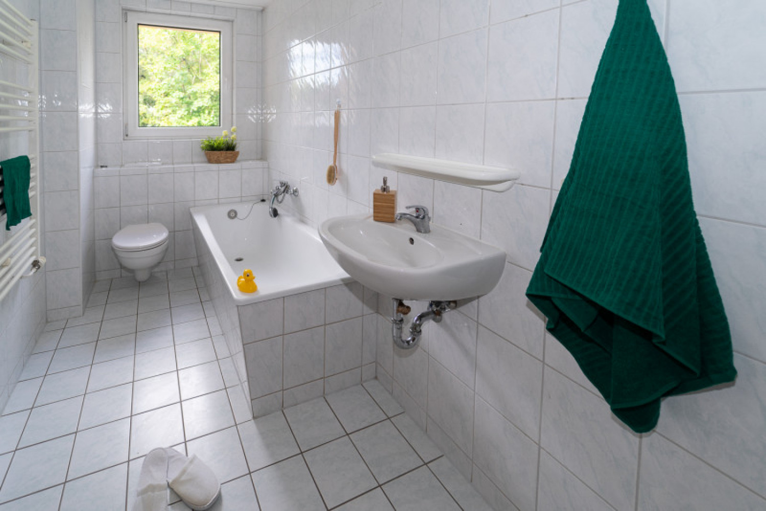 Diese helle, freundliche Dreizimmerwohnung ist vollständig renoviert. Das geflieste Tageslichtbad verfügt über eine Badewanne.