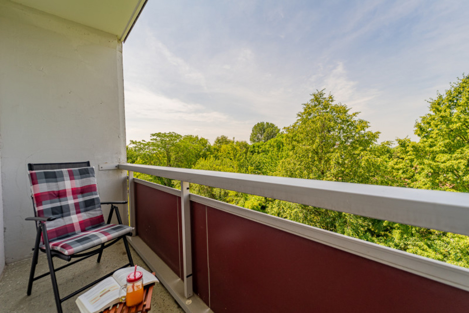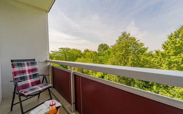 Das Mehrfamilienhaus liegt in ruhiger Lage. Alle Wohnungen verfügen über geräumige Balkone, die Richtung Westen ausgerichtet sind. Die Westbalkone versprechen zahlreiche Sonnenstunden. Von dort aus hat man einen schönen Blick in die gepflegte Grünanlage.