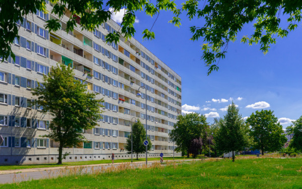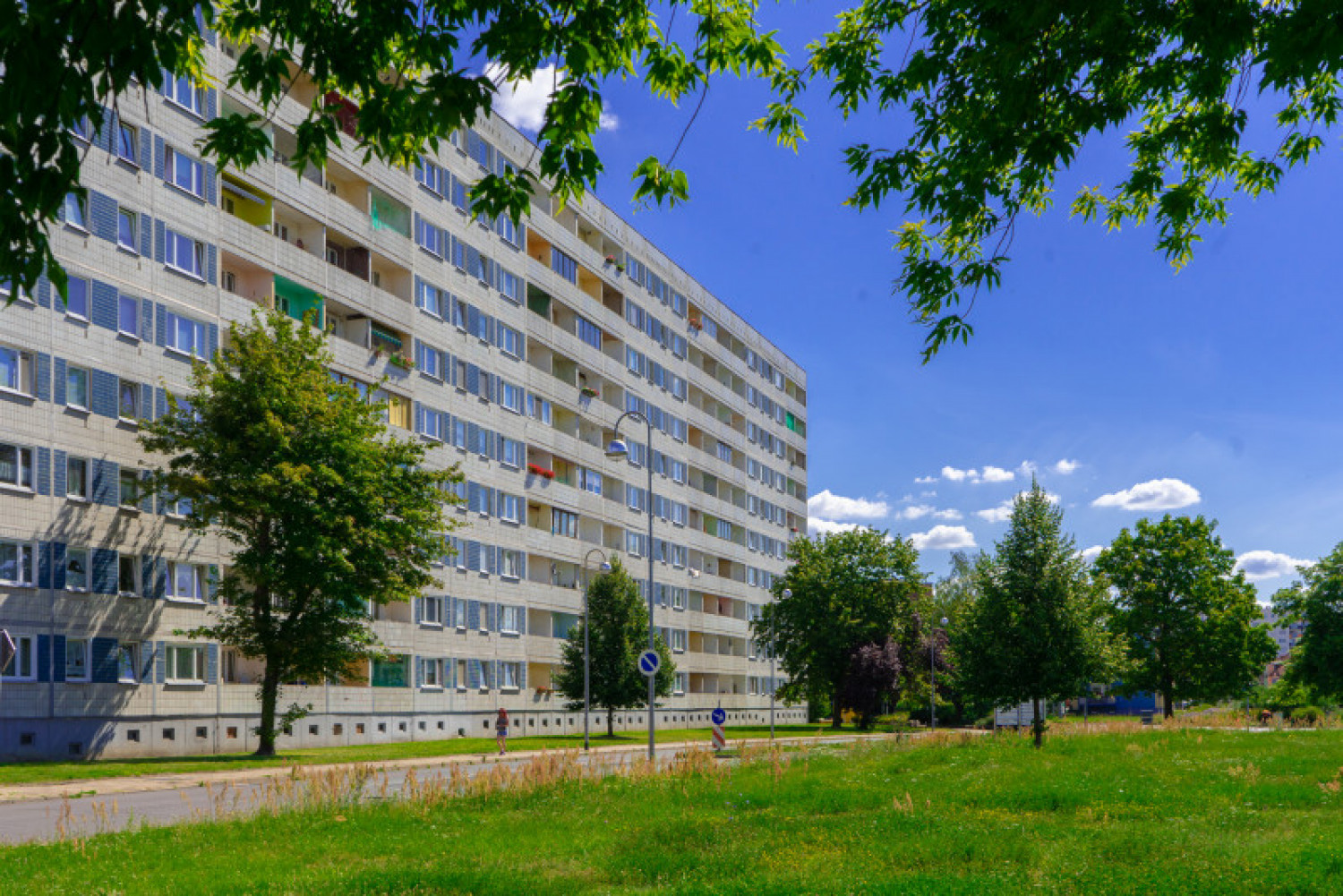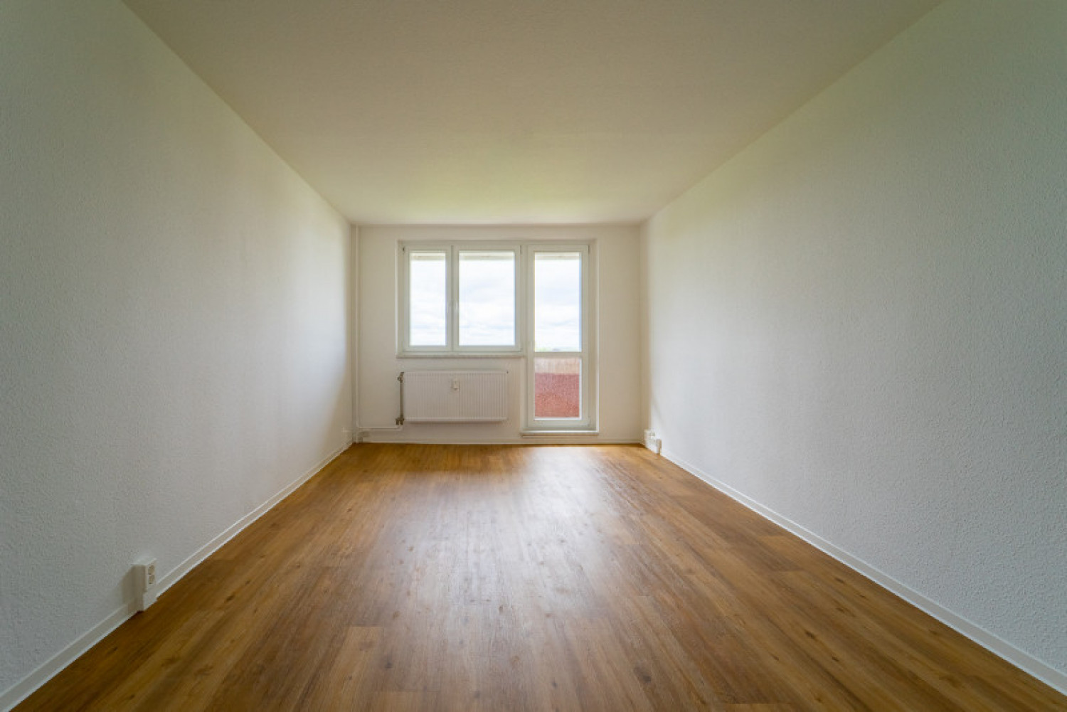 Das Hochhaus ist zentral gelegen. Ein Supermarkt und die Fußgängerzone sind fußläufig schnell zu erreichen. Der moderne Aufzug ist ebenerdig gestaltet, sodass man ohne Treppen steigen in die Wohnung kommt. Die Balkone sind Richtung Süden ausgerichtet, bei guten Wetter können Sie den Magdeburger Dom sehen.