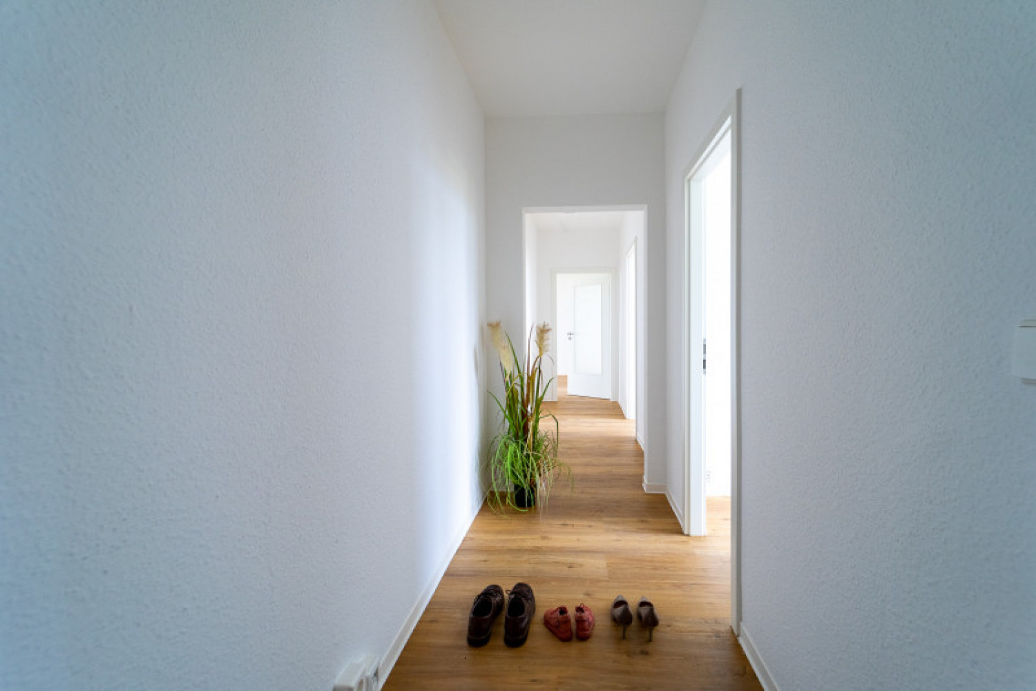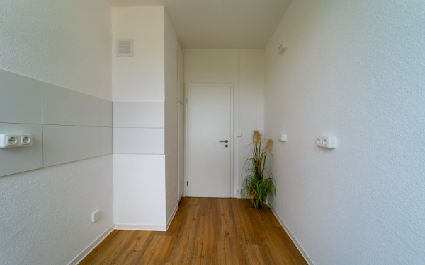 Die Wohnung wird auf Anfrage komplett renoviert, d.h. die Elektrik, die Bodenbeläge, die Zimmertüren und die Tapeten werden erneuert. Auf den Fußböden wird ein pflegeleichter Designbelag (PVC-Planke) in Holzoptik verlegt. Das Bad mit Dusche wird im modernen Design gefliest. Modernste Rauchwarnmeldetechnik und eine Wechselsprechanlage gehören ebenfalls zur Ausstattung.